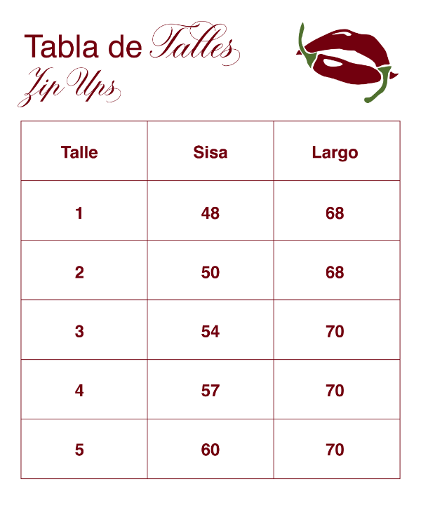 las medidas de la tabla de talles pueden variar 1cm +/-